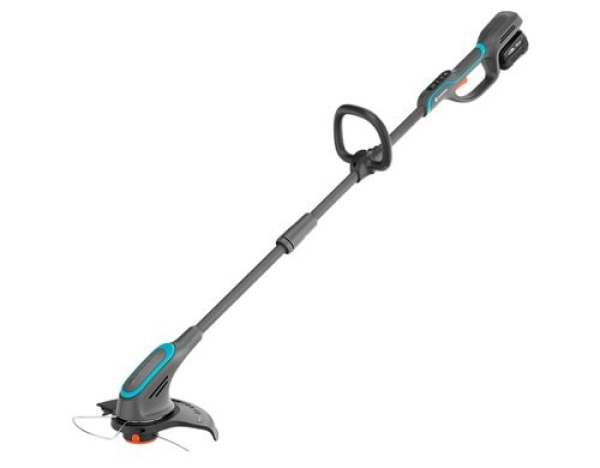 Der Akku-Trimmer PowerTrim 30/18V P4A von GARDENA eignet sich mit dem großen Schnittkreis-Durchmesser von 30cm besonders für dichtes, hohes Gras und zum flächigen Schneiden von Wiesenstreifen. Der stärkere und stabilere 2mm-Faden ist für diese härteren Trimmeinsätze ausgelegt. Die Tippautomatik sorgt für schnellen Fadenvorschub ohne Verheddern oder Einklemmen der Schnur. Über eine Leuchtanzeige am Griff wird angezeigt, wenn mehr Faden benötigt wird. Der Trimmerkopf wird dann kurz auf den Boden getippt und dadurch nur dann neuer Faden abgewickelt, wenn es nötig ist. Der ergonomisch verstellbare Frontgriff kann nach oben oder nach unten bewegt, nach links oder rechts gedreht werden. Über den PowerBoost-Modus kann bei besonders hartnäckigem Gestrüpp die Schneidleistung zusätzlich erhöht werden. Die LED-Anzeige am Griff informiert über den aktuellen Ladestand des Akkus, und der Pflanzenschutzbügel sorgt für ausreichenden Abstand zu Pflanzen und Bäumen. Der Akku-Rasentrimmer PowerTrim 30/18V P4A kann mit jedem Akku der 18V POWER FOR ALL ALLIANCE eingesetzt werden, egal von welchem Hersteller. Die 18 Volt System-Akkus basieren auf der Technologie von Bosch. Sie passen auch in eine Vielzahl anderer Gartengeräte von GARDENA, können aber auch markenübergreifend mit zahlreichen weiteren Produkten anderer Hersteller aus der Allianz verwendet werden.