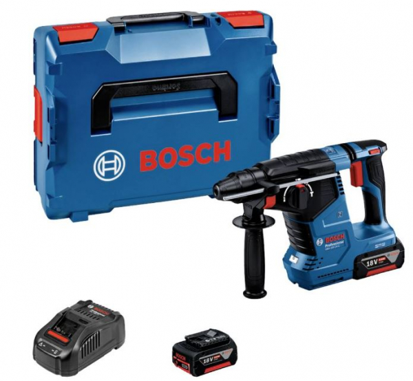 Der Bosch Akku-Bohrhammer GBH 18V-24 C Professional ist ein Allrounder, perfekt geeignet für den täglichen Arbeitseinsatz. KickBack Control und Vibration Control sorgen für einen höheren Verletzungsschutz für den Benutzer. Die Schnellabschaltung Kickback Control bietet eine bessere Kontrolle über das Werkzeug, bei plötzlicher und unvorhersehbarer Rotation des Bohrhammers um die Bohrerachse, z.B. bei klemmenden Bohrern, schaltet das Elektrowerkzeug ab. Der bürstenlosem EC-Motor gewährleistet hohe Qualität und eine lange Lebensdauer. Die integrierte LED-Lampe erhellt auch dunkle Arbeitsbereiche. Der GBH 18V-24 C Professional verfügt über einen Zusatzhandgriff, einen Tiefenanschlag und eine Sicherheitsrutschkupplung. Sein eingebautes Bluetooth Connectivity-Modul bietet eine schnelle und einfache Verbindung mit der Bosch Toolbox App für individuelle Einstellungen. Das HMI-Display informiert bequem über den Akkustatus und sonstige anwenderrelevante Hinweise. Der GBH 18V-24 C Professional ist außerdem mit Boschs in sich geschlossenem Staubabsaugsystem GDE 18V-16 Professional kompatibel, das mit nur einem Klick am Bohrhammer befestigt werden kann.