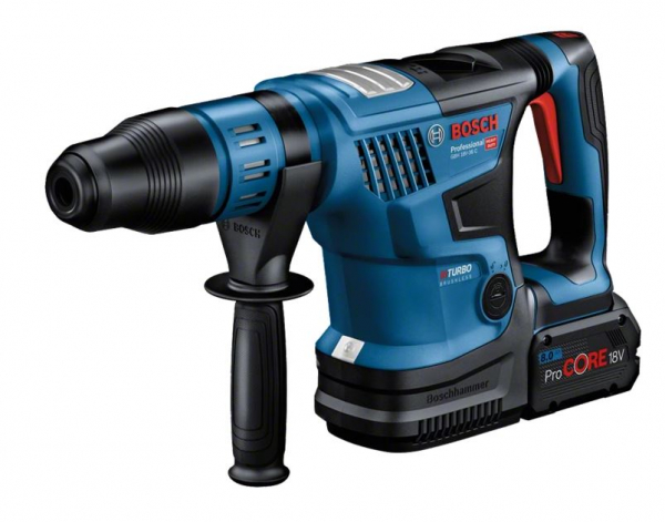 Der Bosch Akku-Bohrhammer BITURBO GBH 18V-36 C Professional kombiniert eine extrem kompakte Bauweise mit großer Leistungsstärke, das macht ihn ideal geeignet für anspruchsvolle Arbeiten in Beton. Die innovative BITURBO Brushless-Technologie liefert in Verbindung mit einem ProCORE18V-Akku maximale kabellose Bohrleistung auf demselben Niveau wie entsprechende kabelgebundene Bohrhämmer. Dank des einzigartigen kompakten Designs, das den Betrieb mit nur einem Akku ermöglicht, bietet der GBH 18V-36 C Professional höchste Mobilität. Mit seinem geringen Gewicht von nur 6,1 kg ist er kompakter und leichter gebaut als andere SDS-max Akku-Hämmer. Die BITURBO Brushless-Technologie bietet eine hervorragende Leistung von maximal 7,0 Joule. Die integrierte LED-Lampe erhellt auch dunkle Arbeitsbereiche. Er verfügt außerdem über eine Benutzeroberfläche mit Bluetooth Connectivity, um sich über den Werkzeugstatus und über unterschiedliche Werkzeugmodi in Echtzeit zu informieren. In Verbindung mit den anderen neuen elektronischen Funktionen wie dem Sanftanlauf beim Bohren und Meißeln und der Schalterarretierung beim Meißeln macht ihn das zu einem der intelligentesten Bohrhämmer auf dem Markt.