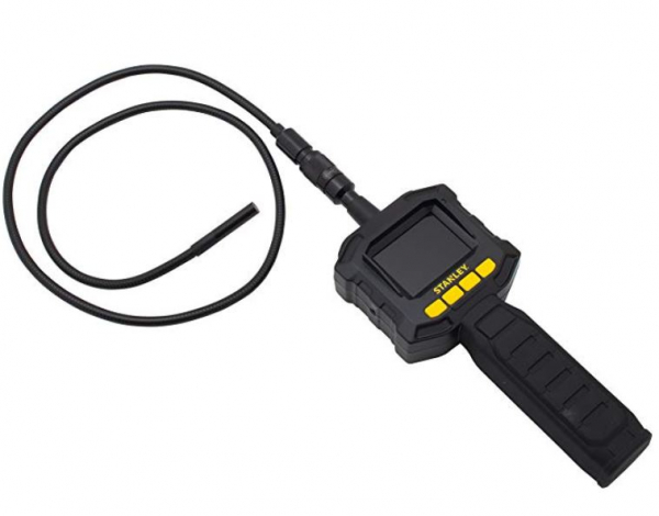 Die STANLEY Inspektionskamera STHT0-77363 hilft bei Problemanalysen auch an schwer zugänglichen Stellen. Mit dem 90cm langen Schwanenhals erreicht man zur Überprüfung auch kleine Hohlräume, Rohre und ähnliche Stellen. Der 8mm schmale Kamerakopf vereinfacht dabei den Zugang. Vier LEDs, regelbar in 8 Stufen, bieten maximalen Kontrast, das beleuchtete LCD Farbdisplay hat eine Größe 2,3" (5,8cm) und ermöglicht eine Auflösung von 640x480 Pixeln. Die Display-Anzeige kann um 180° rotiert werden, um jederzeit optimale Lesbarkeit zu gewährleisten. Außerdem ist die Kamera STHT0-77363 staubdicht und bietet nach IP67 Klassifizierung sogar einen Schutz gegen zeitweiliges Untertauchen.