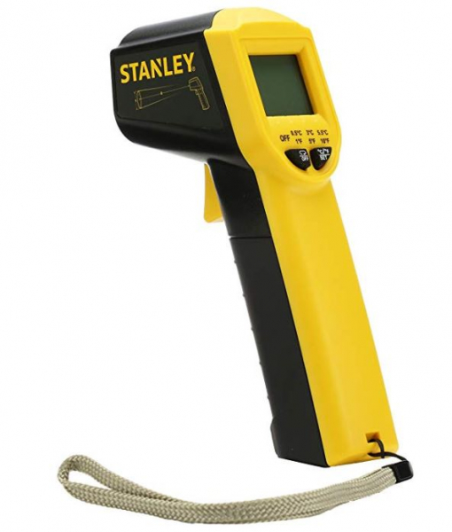 Das Infrarot-Thermometer STHT0-77365 von STANLEY bietet eine kontaktlose Temperaturmessung von -38°C bis 520°C und eignet sich damit für eine Vielzahl von Aufgaben. Es lokalisiert Wärmequellen und Kältebrücken, es signalisiert zusätzlich mit einer roten Anzeige hohe Temperaturen, und mit einer blaue Anzeige niedrige Temperaturen. Man kann eine Referenztemperatur nehmen (grüne Anzeige) und Bereiche scannen, das Verhältnis von Abstand zu Messfleck beträgt 8:1. Bei einem Abstand von 2,5m Entfernung kann eine 32cm großen Fläche gemessen werden. Das beleuchtete Display sorgt für bessere Lesbarkeit der erzielten Messergebnisse. Außerdem ist das Infrarot-Thermometer STHT0-77365 nach IP20 Klassifizierung sogar gegen feste Fremdkörper mit Durchmesser ab 12,5mm geschützt.