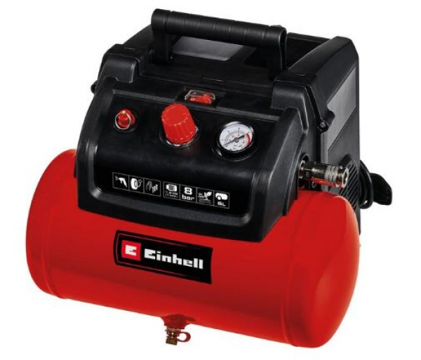 Der TC-AC 190/6/8 OF Set Kit ist ein mobiler, vielseitiger Kompressor, der mit 8 bar Betriebsdruck und einer Leistung von 1.200 Watt bei einer Vielzahl von Druckluftarbeiten im Haus, in der Werkstatt und in der Garage gute Dienste leistet. Im Set ist ein Reifen-Füllgerät mit Manometer und Ausblasadapter, ein 5 Meter langer Druckluft-Spiralschlauch sowie verschiedene Adapter und Füll-Düsen (z.B. für Bälle, Reifen und Luftmatratzen) enthalten. Der geregelte Arbeitsdruck lässt sich über den Druckminderer präzise einstellen und wird über das Manometer am Kessel angezeigt. Per Schnellkupplung können schnell verschiedene Druckluftwerkzeuge angeschlossen werden, ohne dass Werkzeug dazu benötigt wird. Der 6 Liter Tank hält ausreichend Luftreserven für mobile Arbeitseinsätze bereit. Der solide verarbeitete, langlebige Kessel ist gegen Durchrostung beständig, und das Kondenswasser kann über die Entwässerungsschraube sauber aus dem Kessel abgelassen werden. Der öl- und servicefreie Motor benötigt nur einen geringen Wartungsaufwand. Der vibrationsdämpfende Standfuß vermeidet Erschütterungen und reduziert die Geräuschentwicklung im Betrieb. Mit dem Tragegriff lässt sich der Kompressor TC-AC 190/6/8 OF Set einfach transportieren.
