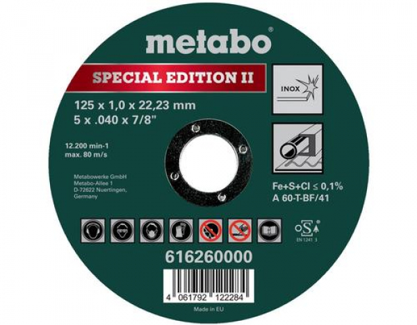 Metabo Trennscheibe 125 x 1.0 x 22.23 mm, Inox, Special Edition II / 125x1,0x22,23mmInox / Thema: Zubehör Schleifmaschinen