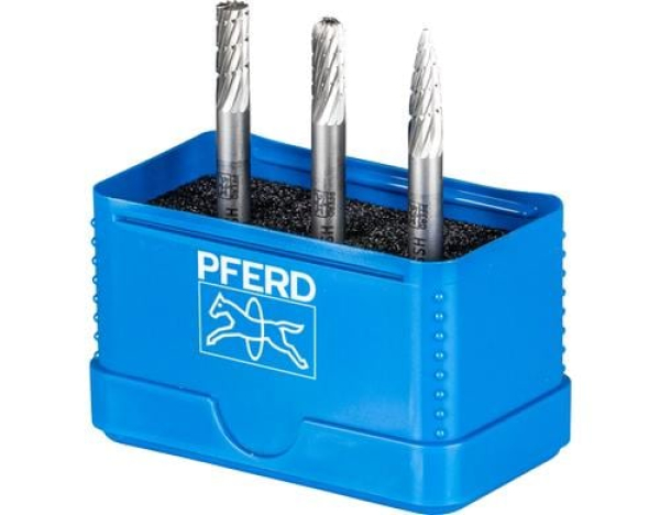Pferd HSS-Frässtifte-Set 85, 3-tlg. Zahnung 3, Schaft-Durchm. 6 mm / Schaft-Durchm. 6 mm universal mittel fein / Thema: Zubehör Multifunktionsgeräte