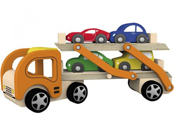 Viga Spielzeugfahrzeug Autotransporter / aus Holz / Thema: Spielautos