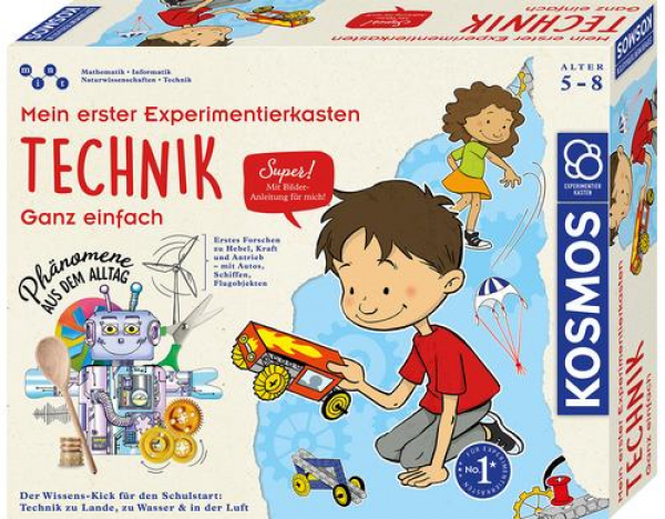 Zu Land, zu Wasser und in der Luft – hier wird Technik spielerisch erforscht. Ein kleines Auto flitzt durchs Zimmer und wird zum Schaufelradboot umgebaut. Ein Papierflieger gleitet elegant durch die Luft und der Fallschirm segelt zu Boden. Aber warum ist er so langsam? Das erklärt die Anleitung! Mit den 21 spannenden, aber einfachen Versuchen aus diesem KOSMOS Experimentierkasten entdecken Kinder, was hinter den Phänomenen aus ihrem Alltag steckt. Um das Forschen ohne Lesekenntnisse zu erleichtern, werden alle Handgriffe anschaulich in Bildern erklärt. So sind Erfolgserlebnisse sicher! Das vielseitige Material aus Systembauteilen und bunten Ausschneidebögen fördert ganz nebenbei die Feinmotorik und Konzentration. Ein abwechslungsreicher Start in die Welt der Technik für Kinder von 5 bis 8 Jahren.