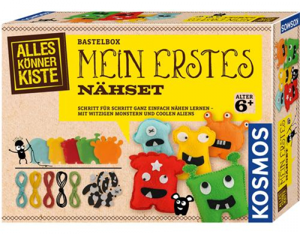 Monstermäßiger Näh-Spaß! Die Knuddelmonster sind los! Mit der „AllesKönnerKiste Mein erstes Nähset“ nähen Kinder ab 6 Jahren Schritt für Schritt ihre ersten Figuren aus robustem Filz. Einfach der Anleitung folgen und die vorgestanzten Filzformen mit stumpfer Nadel und dickem Garn verbinden. Mit Füllwatte füllen und zum Schluss nach Lust und Laune mit den selbstklebenden Filz-Verzierungen gestalten. Ein wunderbares Set, mit dem von der ersten Naht bis zum individuellen Gestalten einfach alles gelingt! Kleine Monsternäher können gleichzeitig kreativ sein und ihre Feinmotorik verbessern. Erfolgserlebnisse sind sichergestellt, wenn sie ihr erstes Monsterchen selbstgenäht haben. Perfekt für kreative Bastelnachmittage mit Freunden!