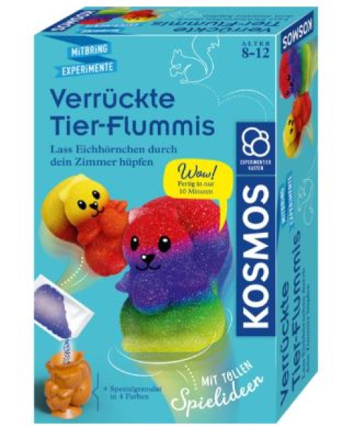 Erlebt ein farbenfrohes Abenteuer mit den Tier-Flummis von KOSMOS! Kinder ab 8 Jahren können ihre eigene bunte Truppe von Eichhörnchen-Flummis gestalten. Dieses Set ist perfekt für jede Party, macht aber auch alleine tierischen Spaß. Mit dem vielfarbigen Granulat und den enthaltenen Eichhörnchen-Gussformen entstehen im Handumdrehen individuelle Flummis. Einfach Wasser hinzugeben und zuschauen, wie sich die Körnchen zu einem hüpffreudigen Spielgefährten verbinden - fast wie von Zauberhand! Neben dem puren Gestaltungsspaß hält die Verpackung eine Bastelanleitung für ein Sieger-Podest bereit, um die besten Sprung-Talente zu ehren. Auch kreatives Ausmalen kommt nicht zu kurz, denn ein Waldmotiv bietet den perfekten Hintergrund für die flinken Flummi-Freunde. Die bebilderte Anleitung erklärt nicht nur die Flummi-Herstellung, sondern regt auch mit zahlreichen Spielideen zum Mit- und Gegeneinander an. Dabei lernen Kinder Spannendes über die lebhafte Welt der Eichhörnchen, physikalische Grundlagen des Hüpfens und die Farbenlehre.