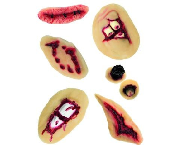 Amscan Effektschminke Latex Wunde 1, assortiert / 6-fach ass, befestigen mit Klebestreifen / Thema: Schminke & Styling