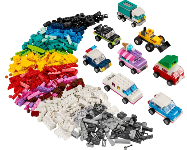 LEGO Classic: Das sind Baustein-Sets mit tollen LEGO-Elementen wie zum Beispiel Rädern, Fenstern, Augen oder Hebeln - und mit den bekannten Bausteinen in den klassischen Formen. Diese Sets sind die Basis für jede Menge kreative LEGO-Ideen: Egal ob Fahrzeuge, Gebäude oder Tierfiguren - so gut wie alles lässt sich mit ihnen bauen. Dabei sind die Sets natürlich frei miteinander kombinier- und erweiterbar und kommen mit Anregungen für tolle Projekte. In diesem Set sind 900 Teile enthalten, aus denen sich ein LEGO-Polizeiauto, ein Eiswagen, ein Quad, ein Schaufellader, ein LKW-Spielzeug, ein Kombi, ein Geländewagen und eine Stretchlimousine bauen lassen. 10 Bauideen inspirieren Kinder ab 5 Jahren zum Bau von weiteren Fahrzeug-Modellen.