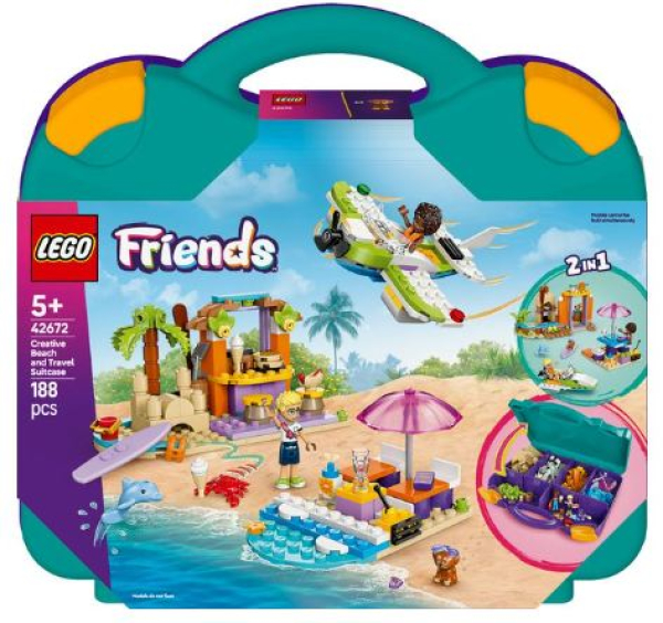 Mit diesen 2-in-1 Set aus der Serie LEGO Friends können Kinder auf eine kreative Reise gehen. Aus 188 Teilen lassen sich verschiedene Strandkulissen bauen und immer wieder umgestalten. So entstehen ein Wasserflugzeug mit drehendem Propeller, ein Strandcafé, ein Strandabschnitt mit Surfbrett und ein Strandcafé mit Sandburgen, Stühlen und Eiszubehör. Alles kann danach in ein Schnellboot und eine Pizzeria mit Pizzaofen und Sitzecke im Freien verwandelt werden. Die Minifiguren Aliya und Olly, ein Hund und ein Delfin laden zu kreativem Spiel ein.