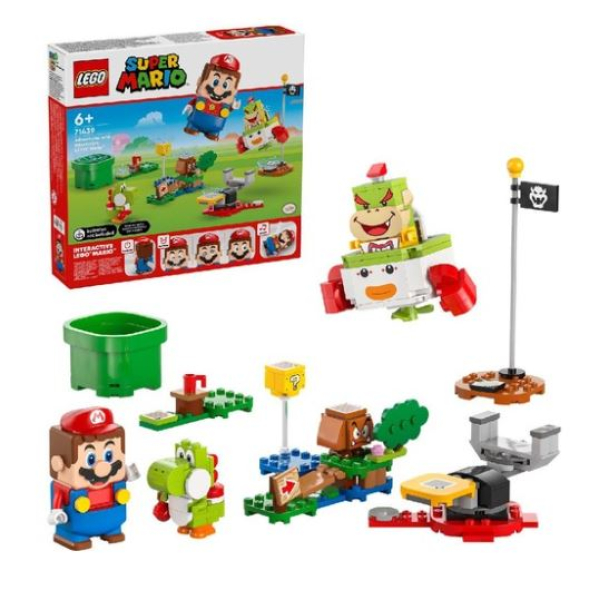 Aufregende Abenteuer warten mit diesem Spielset aus der Welt von LEGO Super Mario: Es enthält nicht nur eine interaktive Mario-Figur, sondern auch die Figuren Bowser Jr., einen Gumba, Yoshi und drei Landschaftsmodelle. Begib dich von der Röhre zum Zielpfahl und lass LEGO Mario unterwegs digitale Reaktionen zeigen und Münzen sammeln. Grüße Yoshi, besiege den Gumba, stampfe auf den ?-Block, stoße Bowser Jr. um und fahr mit seiner Junior-Clown-Kutsche davon. Ein tolles Set für Nintendo- und LEGO-Fans ab 6 Jahren!