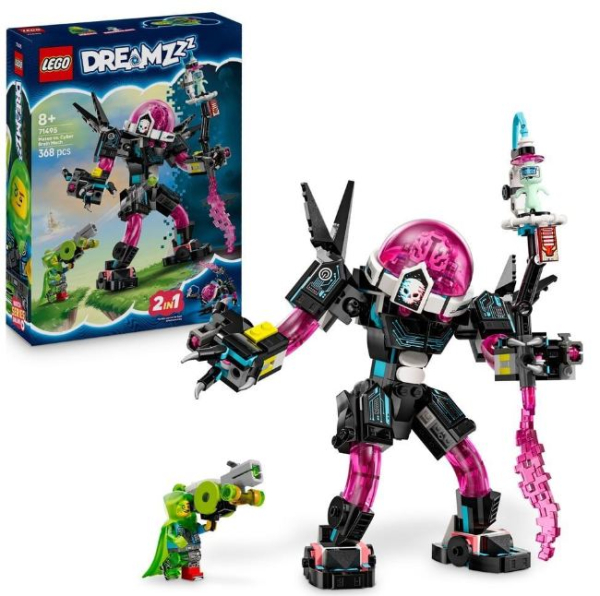 LEGO DREAMZzz Mateo vs. Cyberhirn-Mech ist ein Bau- und Spielset, das Kindern ab 8 Jahren gleich zwei Bauabenteuer bietet. Sie können Mateo helfen, einen unschuldigen Träumling aus den Fängen des Cyberhirns zu befreien. Zunächst wird eine bunte Kapsel gebaut und dann in einen Cyberhirn-Mech oder einen Cyberhirn-Skorpion verwandelt. Die Roboter aus diesem Spielset haben Shooter, eine Mega-Glibber-Kanone, ein aufklappbares Cockpit und Shooter-Module. Die Minifigur Mateo mit Z-Blob als Schutzumhang und ein Träumling erwecken das Set zum Leben.