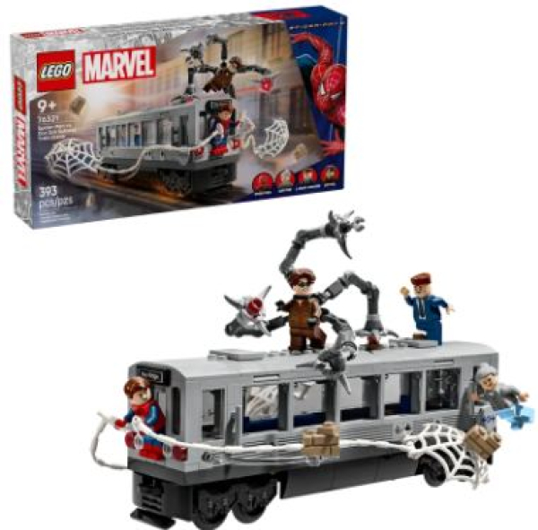 Spider-Man vs. Doc Ock: Showdown in der U-Bahn ist ein LEGO-Bauset für Kinder ab 9 Jahren, die Actionabenteuer lieben. Dieses Superhelden-Bauspielzeug bietet fantasievolle Spielmöglichkeiten und ist einer legendären Szene aus dem Film "Spider-Man 2" aus den Marvel Studios nachempfunden. Zu dem Set gehören auch vier Minifiguren: J. Jonah Jameson, Aunt May, Spider-Man und Doc Ock. Die Minifigur Spider-Man hat austauschbare Köpfe - ein maskiertes Gesicht und ein unmaskiertes Gesicht - sowie ein großes Netz, das am Zug befestigt werden kann. Die Minifigur Doc Ock hat vier gelenkige Tentakeln, zwei "Laserstrahlen“ und zwei Clips, die sich am Zug befestigen lassen. Man kann das Dach abnehmen, um im Zug zu spielen und Minifiguren hineinzusetzen.