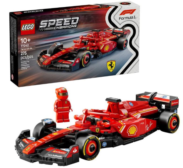 Mit diesem Set kommt das Feeling echter Formel 1-Rennwagen ins eigene Zuhause - als LEGO-Set! Das Modell aus der Serie Speed Champions zeigt viele Details des großen Originals aus der Formel 1-Saison 2024. Das Modell des Rennwagens hat ein Cockpit, das sich öffnen lässt, indem man den Halo-Bügel hochklappt, einen Heckflügel, einen Querlenker, Sponsorenaufkleber und breitere Hinterreifen mit dem Aufdruck „Pirelli“. Zu dem Auto gehört auch eine Rennfahrer-Figur im Ferrari-Rennoverall und mit Rennhelm, die fürs Rennen ins Cockpit gesetzt werden kann.