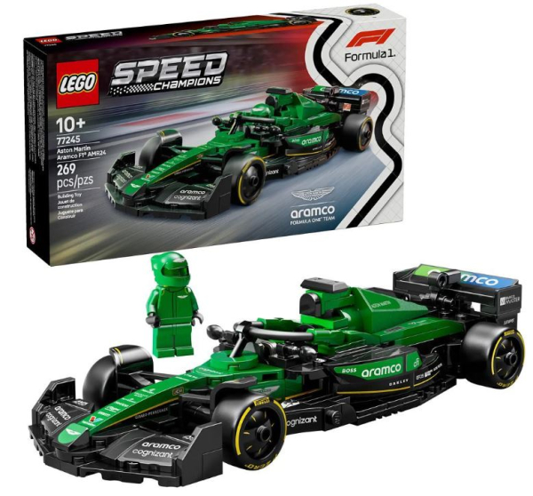 Mit diesem Set kommt das Feeling echter Formel 1-Rennwagen ins eigene Zuhause - als LEGO-Set! Das Modell aus der Serie Speed Champions zeigt viele Details des großen Originals aus der Formel 1-Saison 2024. Das Modell des Rennwagens hat ein Cockpit, das sich öffnen lässt, indem man den Halo-Bügel hochklappt, einen Heckflügel, einen Querlenker, Sponsorenaufkleber und breitere Hinterreifen mit dem Aufdruck „Pirelli“. Zu dem Auto gehört auch eine Rennfahrer-Figur im Aston Martin Aramco-Rennoverall und mit Rennhelm, die fürs Rennen ins Cockpit gesetzt werden kann.