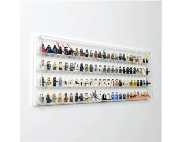 iDisplayit Baukasten Acryl-Wand-Display für 100 LEGO-Minifiguren / mit weissem Hintergrund / Thema: Baukasten