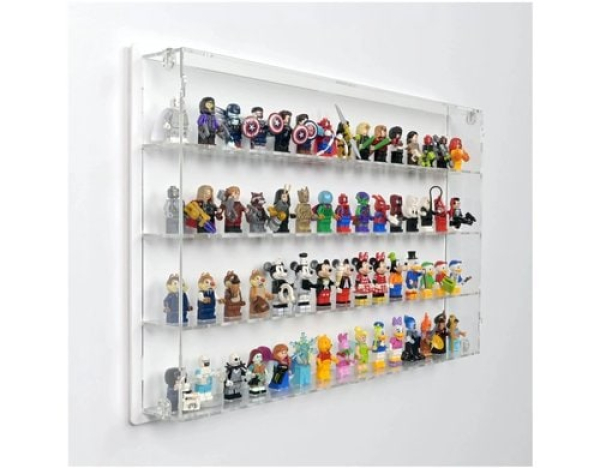 iDisplayit Baukasten Acryl-Wand-Display für 60 LEGO-Minifiguren / mit weissem Hintergrund / Thema: Baukasten