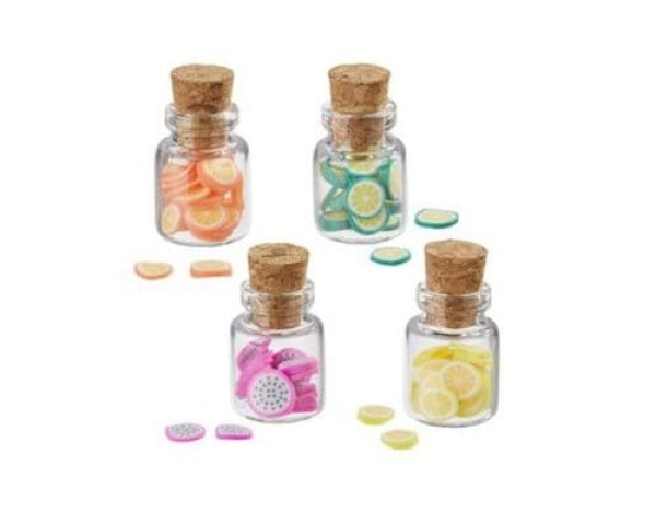 HobbyFun Mini-Utensilien Gläser mit Früchten 2.2 x 1.3 cm, 4 Stück / ca. 2.2 x 1.3 cm / Thema: Miniaturwelt