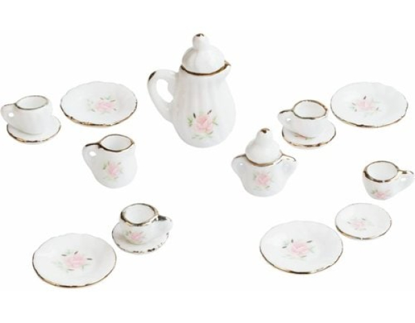 HobbyFun Mini-Utensilien Mini-Kaffeeservice 1-3.5 cm, 16-teilig / 1-3.5 cm, Goldrand, 16 teilig / Thema: Miniaturwelt