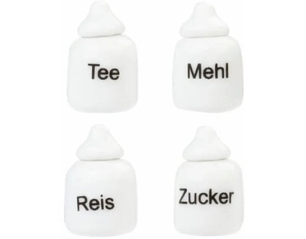 HobbyFun Mini-Utensilien Porzellan-Dosen 1.2-1.8 cm, Weiss, 4 Stück / 1.2-1.8 cm, weiss, 4 Stk. / Thema: Miniaturwelt