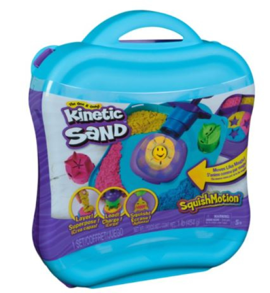 Mit Kinetic Sand eröffnet sich eine kreative und fantasievolle Sandspielwelt für drinnen: Dieser Spielsand ist formbar und faszinierend, gleitet durch die Hände und trocknet niemals aus, so dass er jederzeit spielbereit ist. Da Kinetic Sand an sich selbst haftet, bleiben die Hände sauber und auch das Aufräumen ist schnell erledigt. Die körnige Haptik von Kinetic Sand bietet nicht nur echtes Sand-Feeling, sondern fördert auch die Entwicklung des Tastsinns. Mit dem Squishy Spaß Set bekommt das Spielen mit dem magischen Sand eine völlig neue Dimension. Hier werden die Sandkreationen auf neuartige Weise lebendig und verändern sich vor den eigenen Augen! Erst wird der Sand geschichtet - verschiedene Farben sorgen dabei für tolle Effekte. Im Set sind die Farben Blau, Pink und Gelb enthalten, so dass verschiedene Farbtöne gemischt werden können. Nachdem der Sand mit dem Schneidewerkzeug geglättet wurde, wird ein Stempelaufsatz ausgewählt. Besonders beliebt: der kleine Hai. Der Aufsatz wird am Stempelwerkzeug angebracht, der Sand damit ausgestochen und auf die weiche Spielfläche heruntergedrückt. Nun einfach die Sandkreation aus dem Werkzeug lösen und zuschauen, wie sie sich ausdehnt und lebendig wird, während die Spielfläche sich nach oben wölbt. Der Hai zum Beispiel öffnet sein kleines Maul!