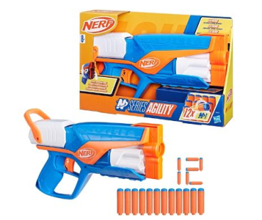 Mit den High-Performance Dart-Blastern aus der Serie Nerf N bringt Nerf das Battle auf das nächste Level. Sind Erfahrungen als Nerf-Spieler bereits vorhanden? Dann bieten diese Blaster beim Indoor- und Outdoor-Battle den entscheidenden Vorteil - mit extremer Treffgenauigkeit, Geschwindigkeit und Reichweite. Der Nerf N Series Agility Dart-Blaster wurde für Spiele entwickelt, bei denen die Spieler niemals still stehen! Leicht, kompakt und einfach in der Handhabung, ist dieser Blaster perfekt, um die eigene Nerf-Kollektion aufzustocken. Der Nerf N Series Agility Blaster verfügt über eine rotierende Trommel mit einer Kapazität von 6 Darts und einen Spannschlitten. Er kommt hat 12 Nerf N1 Darts im Lieferumfang. Zum Spielen einfach die Darts in die Trommel einsetzen, den Spannschlitten nach hinten ziehen und den Abzug drücken, um einen Dart abzufeuern.