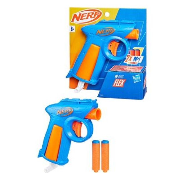 Mit den High-Performance Dart-Blastern aus der Serie Nerf N bringt Nerf das Battle auf das nächste Level. Sind Erfahrungen als Nerf-Spieler bereits vorhanden? Dann bieten diese Blaster beim Indoor- und Outdoor-Battle den entscheidenden Vorteil - mit extremer Treffgenauigkeit, Geschwindigkeit und Reichweite. Der Nerf N Series Flex Dart-Blaster hat eine kompakte Größe, die sich hervorragend für Spiele eignet, bei denen Taktik und Flexibilität gefragt sind. Dieser Nerf-Blaster fasst 1 Dart, hat einen Ziehgriff und wird mit 2 Nerf N1 Schaumstoff-Darts ausgeliefert.