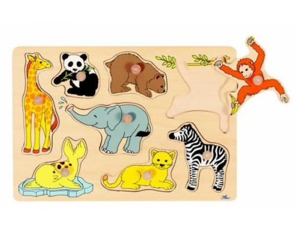 Goki Holz-Puzzle Steckpuzzle Tierkinder / 30 x 21 x 2,4 cm, Holz, 8 Teile / Thema: Kinderpuzzles