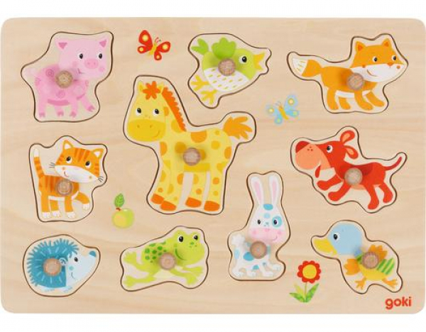 Goki Kleinkinder Puzzle Steckpuzzle Tierkinder / 30 x 21 x 2,4 cm, Holz, 10 Teile / Thema: Kinderpuzzles