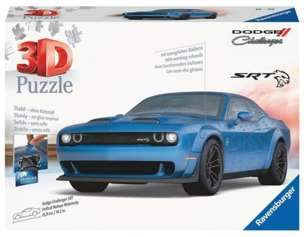 Mit dem Dodge Challenger Hellcat Redeye Widebody erscheint das stärkste Muscle Car der Welt als 3D Puzzle. Dank genialer EasyClick Technology lassen sich die Puzzleteile ganz ohne Kleben zu einem formstabilen Modell zusammenfügen, das dem Original detailgetreu nachempfunden ist. Und dank der drehbaren Räder, die im Zubehör enthalten sind, wird es sogar fahrtüchtig! Eine bebilderte Anleitung und nummerierte Puzzleteile helfen bei der Konstruktion und sorgen für ungebremsten Puzzlespaß. Schnall dich an! Mit dem Dodge Challenger Hellcat Redeye Widebody erscheint das stärkste Muscle Car der Welt als 3D Puzzle. Die Hellcat ist ein Superlativ auf Rädern ? laut, brachial und ungezähmt ? und wohl auch deshalb heimlicher Star in vielen Actionfilmen und -serien. Fans erkennen die kraftstrotzende Wildkatze auf den ersten Blick: an ihrer ikonischen Form und dem fauchenden Hellcat-Emblem. Die originalgetreue Miniaturversion des amerikanischen Muskelprotzes entsteht aus 108 hochwertigen Kunststoff-Puzzleteilen, die sich dank EasyClick Technology ganz ohne Kleben zu einem formstabilen Modell zusammensetzen lassen. Und mit den drehbaren Rädern, die im umfangreichen Zubehör enthalten sind, wird der Bolide sogar fahrtüchtig! Eine bebilderte Anleitung und nummerierte Puzzleteile helfen bei der Konstruktion und sorgen für ungebremsten Puzzlespaß.