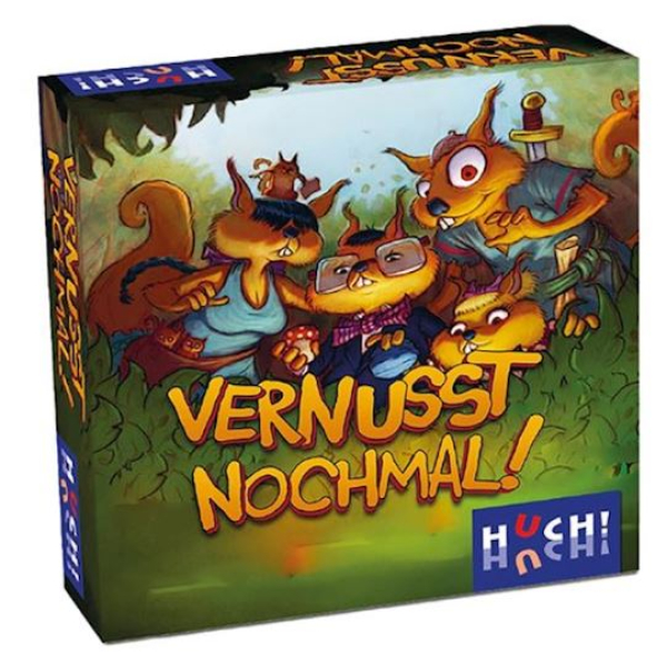 Herrlich, ein Wald voller Nüsse! Im Herbst haben die Eichhörnchen flei+ƒig Vorräte für den Winter gesammelt und versteckt. Doch wo genau? Um an die begehrten Nüsse zu kommen, müssen die Spieler alle Rückseiten einer Reihe richtig benennen. Auf den Waldkarten gibt es drei Formen (Pilz, Blatt, Stein) in drei verschiedenen Farben (Rot, Blau, Gelb). Einfach, oder? Na ja ... Kaum hat man sich die Farben oder Formen eingeprägt, schon ist das nicht mehr gefragt. Denn gewinnt ein Spieler eine Nusskarte, ändert sich für die anderen Spieler die Vorgabe. Statt Farben müssen dann Formen richtig erinnert werden und umgekehrt. Vernusst nochmal! Wer zuerst fünf Nüsse gesammelt hat, gewinnt die gro+ƒe Nussjagd.