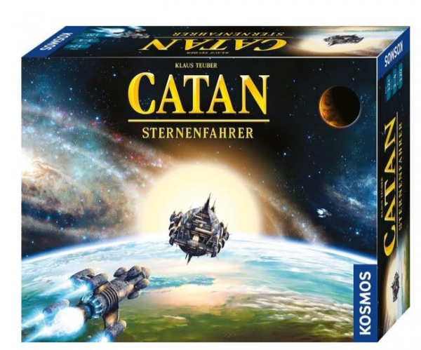 CATAN im Weltraum für noch mehr Abenteuer! Im Brettspiel „CATAN – Sternenfahrer“ von KOSMOS begeben sich 3–4 Spieler auf Entdeckungsreise ins Weltall. Die Reise bringt sie in Raumschiffen von ihrer Heimat zu neuen Planeten. Dort erkunden sie rohstoffreiche Planetensysteme und unbekannte Handelsstationen. Die Raumschiffe der Spieler lassen sich mit zusätzlichen Antrieben und Laserkanonen ausstatten, so dass die Spieler ihre Raumschiffe schneller fortbewegen und sich gegen Raumpiraten verteidigen können. Das Original „Die Sternenfahrer von CATAN“ aus dem Jahre 1999 erscheint hiermit in einer überarbeiteten Version mit neuen Spielfiguren, Illustrationen, Grafiken sowie einem variablen Spielplan.