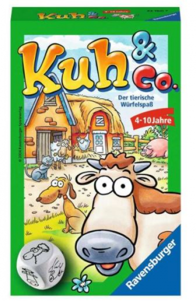 Der tierische Würfelspass Kuh und co: Hund, Katze, Schwein, Schaf und Huhn. Wer spielt hier mit wem? Die Karten geben vor, welche Tierkombination gewürfelt werden muss. Wer die richtige Kombination hat, gewinnt die Karte. Dieses schöne Kinderspiel macht nicht nur eine Menge Spass, sondern es wird spielerisch die Konzentration der Kleinen gefördert.