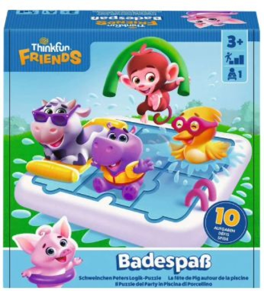 Schweinchen Peter braucht dringend Hilfe, damit all seine Freunde gemeinsam in den Pool passen. Zum Glück hat Peter eine besondere Superkraft: Geduld. Diese wird nützlich sein, wenn seine Pool-Party zu einem kniffligen Knobelspaß wird. Wie passen alle Freunde mit ihren Schwimmreifen gleichzeitig in den Pool? Setze deine eigene Geduld, Ausdauer und Problemlösungsfähigkeiten ein, um die Aufgaben zu lösen, damit die Freunde gemeinsam beim Schwimmen Spaß haben können! Mit den Spielen der Reihe Thinkfun Friends werden Kinder dazu eingeladen, mitzumachen, ihrer Fantasie freien Lauf zu lassen und gemeinsam mit den Thinkfun Friends zu üben.