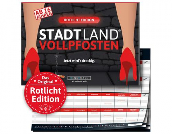 Denkriesen Partyspiel STADT LAND VOLLPFOSTEN - Rotlicht Edition / Alter: 16+ / Thema: Partyspiele