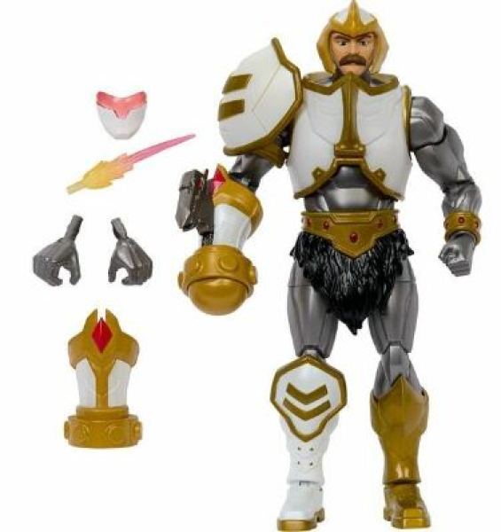 Die Actionfiguren aus Mattels Masterverse-Serie liefern detailgetreue Nachbildungen der Helden aus "Masters of the Universe: Revelation to New Eternia" und "Masters of the Universe: Revolution". Sie sind jeweils etwa 18 Zentimeter groß und können dank ihrer 30 Bewegungspunkte so gut wie jede Pose einnehmen. Die Sammler besonders ansprechende Verpackung mit Sichtfenster enthält außerdem charakterspezifische Zubehörteile wie Waffen oder austauschbare Körperteile. Obwohl er nicht mehr der königliche Man-At-Arms ist, ist Duncan als mächtiger Man-Of-War immer noch bereit, Eternia um jeden Preis zu beschützen - in seinem prächtigen Kampfanzug mit Gesichtsschild, integriertem Blaster mit Explosionseffekt, abnehmbarem Handschuh mit Streitkolben und einem zweiten Satz Hände.