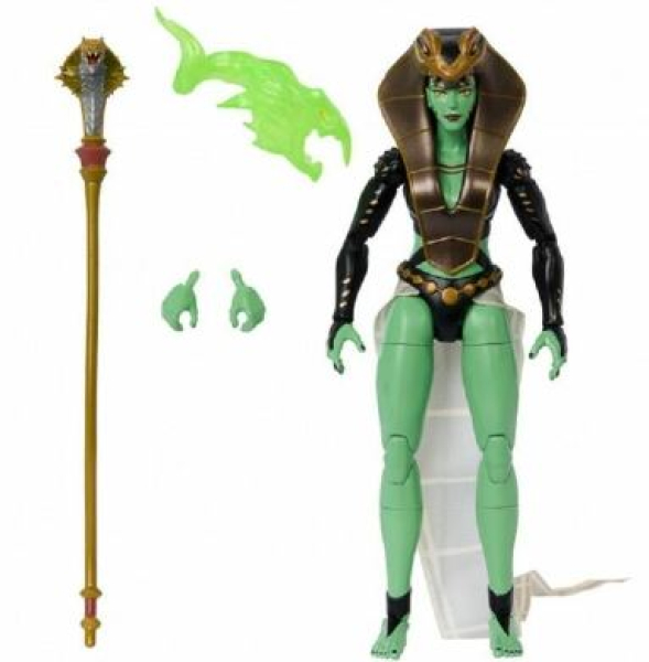 Die Actionfiguren aus Mattels Masterverse-Serie liefern detailgetreue Nachbildungen der Helden aus "Masters of the Universe: Revelation to New Eternia" und "Masters of the Universe: Revolution". Sie sind jeweils etwa 18 Zentimeter groß und können dank ihrer 30 Bewegungspunkte so gut wie jede Pose einnehmen. Die Sammler besonders ansprechende Verpackung mit Sichtfenster enthält außerdem charakterspezifische Zubehörteile wie Waffen oder austauschbare Körperteile. Der weise Drache Granamyr befand Teela der Macht des Ka für würdig und verwandelte sie mit Hilfe uralter Macht, um ihr bei der Aufgabe zu helfen, Preternia wiederaufzubauen. Teelas grünhäutiger Schlangenlook umfasst eine Kobra-Kapuze und einen weichen Schlangenschwanz. Sie hat den Stab von Ka, zusätzliche austauschbare Hände und einen magischen Effekt, der auf Arm oder Stab gesetzt werden kann. Teelas Kopf und die aufgesetzte Kobrahaube sind abnehmbar und können mit anderen Figuren genutzt werden.