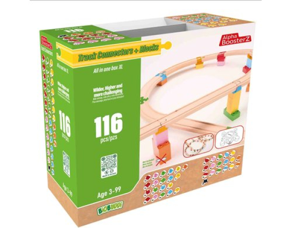 AlphaBoosterz TrackConnectors + Blocks - all in one BlockBox XXL / Thema: Eisenbahnen