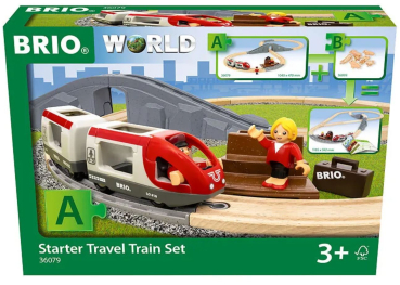 Mit dem BRIO Reisezug Starter Set A beginnt eine aufregende Reise. Perfekt für Schienen-Neulinge, umfasst dieses 22-teilige Set alles Nötige, um eine Strecke in Acht-Form mit einem spannenden Tunnel und einer markanten Brückenkreuzung zu bauen. Ein detailgetreu gestalteter Bahnhof bietet Passagieren samt Gepäck einen trefflichen Ort zum Einsteigen und Warten. Der Lokführer sitzt vorne in seinem Zug und die Entdeckungsfahrt auf den BRIO-Holzschienen kann beginnen! BRIO World unterstützt dabei mit seinem offenen Spielkonzept die Entwicklung des Kindes, fördert Kreativität und Logik und lädt dazu ein, das Spiel immer wieder neu zu erschaffen. Mit diesem Starter Set öffnet sich das Tor zu einer Welt unbegrenzter Möglichkeiten und Abenteuer. Startklar für die allererste Fahrt in die unendlichen Weiten der BRIO World?
