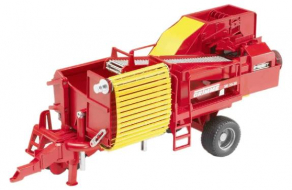 Das Reinigungs- und Verleseband wird durch Betätigen der Handkurbel angetrieben, dadurch wird die Beförderung der Kartoffelimitate in den Kartoffelbunker möglich. Dieser ist zudem höhenverstell- und das Austragsförderband ist ausklappbar. Ein ausklappbarer Stützfuss bietet sicheren Halt, reichhaltige Detaillierung und Profilreifen runden das Bild ab. Zur Spielergänzung kann der Grimme Kartoffelvollernter SE 75-30 mit allen Traktoren der Profi-Serie ausgestattet werden (nicht im Lieferumfang enthalten). Neben den enthaltenen Kartoffelimitaten sind Weitere als Zubehör unter der Art.-Nr.: 02305 erhältlich.