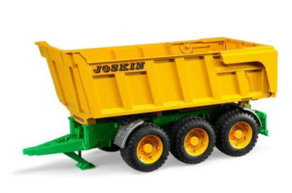 Einer der größten und schwergewichtigsten Wannenkippanhänger auf dem Markt ist der 3-achsige Kipper des belgischen Herstellers Joskin. Konzipiert für schwere Lasten und Transporte unter extremen Bedingungen, wie bei Arbeiten im Tiefbau oder bei landwirtschaftlichen Nutzungen in schwierigem Gelände fassen diese Ungetüme im Original bis zu 24 Tonnen Nutzlast bzw. bis zu 29 Kubikmeter Ladevolumen. Das eindrucksvolle BRUDER Modell wurde in Analogie zur Original-Baureihe Trans-SPACE entwickelt und verfügt entsprechend unserem Slogan...just like the real thing... über eine hochklappbare und arretierbare Kippmulde mit automatischer Heckklappenöffnung. Das 3-achsige Fahrwerk gleicht alle Geländeunebenheiten aus. Ideal paßt dieser Kippanhänger zu den Top Profi-Traktoren der Neuen Generation, die seit Herbst 2004 erhältlich sind und bereits viele begeisterte Kunden gefunden haben. Aber auch die Traktoren der Profi-Serie sowie unsere Unimogs ( mittels Kupplungsadapter ) eignen sich gut als Zugfahrzeuge.