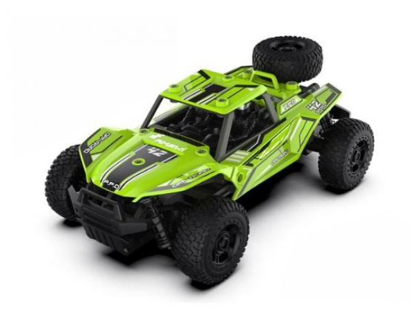 Bausatz eines coolen 2WD-Racers im Massstab 1:18, der Aufbau- und Fahrspass miteinander kombiniert. Das 72-teilige Modell ist dank intelligentem Stecksystem komplett ohne Werkzeug innerhalb von 30 min montierbar und hält ganz ohne Klebstoff. Der gesamte Aufbau und die Karosserie bestehen aus festem ABS-Kunststoff. UV-beständige Aufkleber mit trendigen Mustern verleihen dem Racer bei Bedarf eine individuellere Optik. Mit Reifen aus einer High-Grip Gummimischung, Stossdämpfen und Spritzwasserschutz ist das Modell ebenso outdoortauglich und macht auch im Gelände eine gute Figur. Der Buggy erreicht eine Höchstgeschwindigkeit von ca. 8m/h. Eine moderne 2.4 GHz Pistolenfernsteuerung ist bereits im Lieferumfang enthalten. Für die Inbetriebnahme des Modells werden lediglich noch haushaltsübliche Batterien für das Fahrzeug und die Fernsteuerung benötigt.