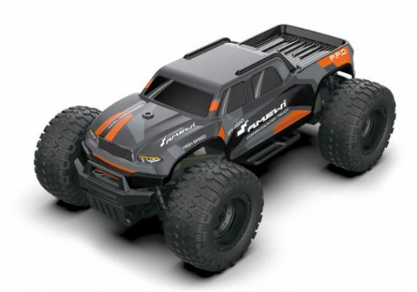 Bausatz eines coolen 2WD-Racers im Massstab 1:18, der Aufbau- und Fahrspass miteinander kombiniert. Das 50-teilige Modell ist dank intelligentem Stecksystem komplett ohne Werkzeug innerhalb von 30 min montierbar und hält ganz ohne Klebstoff. Der gesamte Aufbau und die Karosserie bestehen aus festem ABS-Kunststoff. UV-beständige Aufkleber mit trendigen Mustern verleihen dem Racer bei Bedarf eine individuellere Optik. Mit Reifen aus einer High-Grip Gummimischung, Stossdämpfen und Spritzwasserschutz ist das Modell ebenso outdoortauglich und macht auch im Gelände eine gute Figur. Der Monstertruck erreicht eine Höchstgeschwindigkeit von ca. 8m/h. Eine moderne 2.4 GHz Pistolenfernsteuerung ist bereits im Lieferumfang enthalten. Für die Inbetriebnahme des Modells werden lediglich noch haushaltsübliche Batterien für das Fahrzeug und die Fernsteuerung benötigt.