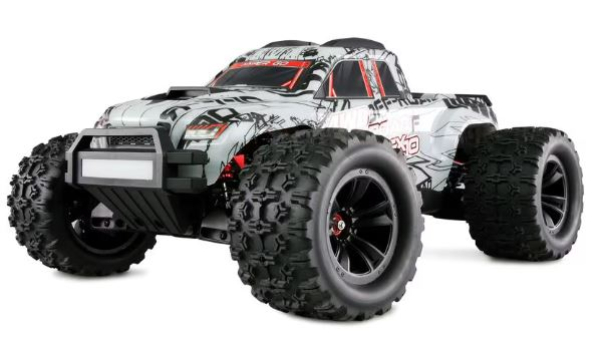 Wie bei allen Hyper Go Pro Modellen besteht der gesamte Antriebsstrang aus Metall und ist komplett kugelgelagert, was die Reibung minimiert. Die Stahlzahnräder und das Mitteldifferential sorgen für eine perfekte Kraftverteilung auf alle vier Räder. Die Antriebswellen sind als CVD-Wellen ausgeführt, die maximale Leistung bieten. Das Steuergerät und der Motor sind mit aktiven Lüftern ausgestattet – das Steuergerät mit einem, der Motor mit zwei -, um auch unter extremen Bedingungen kühl zu bleiben. Die riesigen Monstertruck-Offroad-Reifen bieten aussergewöhnlichen Grip und Vortrieb, ergänzt durch eine Wheelie-Bar für spektakuläre Action auf zwei Rädern, insbesondere mit 4S LiPo. Dank der Einstellungsmöglichkeiten der App kann die Leistung des Modells in Echtzeit angepasst werden, ob für Anfänger oder Profis. Die mitgelieferte 2.4-GHz-Fernsteuerung verfügt über eine doppelte Rate für den Gaskanal mit voreingestellten Leistungsoptionen von 70% oder 100%. Die lackierte Karosserie bietet praktische Funktionen wie einen Überrollschutz auf dem Dach und am Heck sowie einen Schnellverschluss, der Karosseriestifte überflüssig macht. Für Einsätze in der Dämmerung oder im Dunkeln ist das Fahrzeug mit einer hellen, schaltbaren LED-Beleuchtung an Front und Heck ausgestattet. Der MTX10 wird ohne Akku und Ladegerät geliefert, so dass die Wahl des Akkutyps und des Ladegeräts ganz nach den persönlichen Vorlieben erfolgen kann.