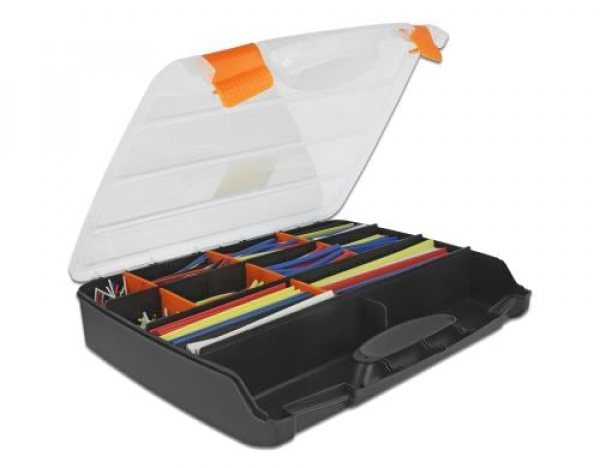 Dieses hochwertige Schrumpfschlauch Set von Delock wird zum Schutz und zur Isolierung von Kabeln, elektrischen Leitungen oder Drähten verwendet. Bei Hitzeeinwirkung umschließt der Schlauch das Kabel vollständig und zieht sich zusammen. So wird das Kabel vor Witterungseinflüssen und mechanischen Schäden geschützt. Das beinhaltet Schläuche mit zehn verschiedenen Durchmessern, vier verschiedenen Längen und fünf unterschiedlichen Farben, die vielseitig einsetzbar sind. Der Koffer eignet sich ideal für den Transport und schützt die Schrumpfschläuche vor Schmutz, Staub und Beschädigungen. Aber auch Handwerker, die kleine Mengen verschiedener Schlauchtypen benötigen, werden von dem Sortiment begeistert sein. Der Koffer kann ebenfalls zur Aufbewahrung für verschiedenes Werkzeugzubehör wie z. B. von Maßbändern, Schrauben, Muttern und etc. wiederverwendet werden. Durch Umsetzen der Trennwände, kann die Größe der einzelnen Fächer individuell verstellt werden, um Schrumpfschläuche mit verschiedenen Längen hinzuzufügen. Die Schrumpfschläuche können z. B. in einer Werkstatt, im Haus oder in der Industrie eingesetzt werden. Ein Schrumpfschlauch kann mit einer Heißluftpistole erhitzt werden, dabei schrumpft der Schlauch beim Erwärmen auf die Hälfte seines ursprünglichen Durchmessers.