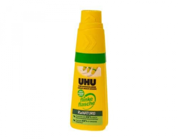 UHU Klebestift flinke flasche ReNature 1 Stück, Transparent / 40g, glasklar, lösungsmittelfrei / Thema: Klebstoffe