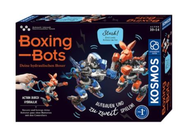 Lasst den Roboter-Kampf beginnen mit den Boxing Bots von KOSMOS! Dieses aufregende Set bringt zwei Roboter-Champions in euer Kinderzimmer, die bereit sind, im Ring mit hydraulischer Power um den Titel zu kämpfen. Die Montage ist kinderleicht - durch das innovative Klick-Steck-System sind Batterien und Werkzeuge Geschichte. Mit intuitiven Joysticks können Schläge, Blockaktionen und beeindruckende Ausweichmanöver ausgeführt werden. Das bringt nicht nur spaßige Duelle voller Action, sondern auch einen Einblick in die Welt der Mech-Technik mit einer Anleitung, die Hydraulik und Pneumatik greifbar und verständlich macht. Ideal für Tüftler und Technikfans von zehn bis 14 Jahren, macht dieses Set Physik zum Erlebnis und jedes Match zu einem Lern-Abenteuer. Kommt in den Ring mit den Boxing Bots - wo Wissenschaft auf Sportlichkeit trifft!
