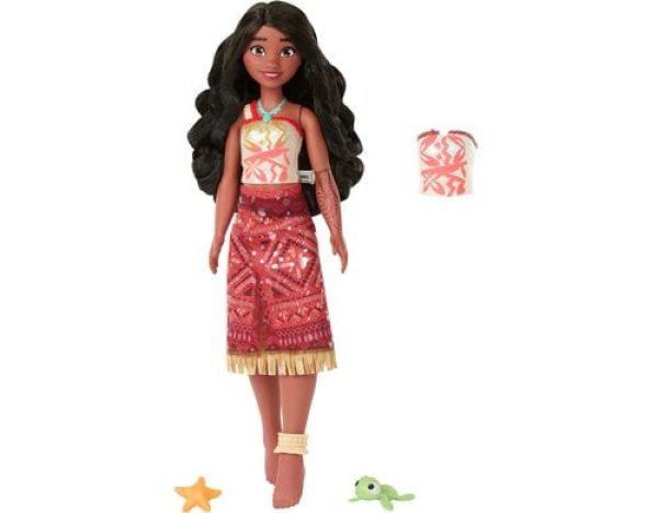 Mit der vom Disney-Film "Vaiana 2" inspirierten, schwimmenden Tautai Vaiana-Modepuppe können Kinder unendlich viele Meeresabenteuer erleben. Als mutige Anführerin kann es Vaiana kaum erwarten, Land und Unterwasserwelt zu erkunden. Sie trägt ihr Abenteueroutfit aus dem Film und ist dazu mit einer Kette, einem Fußkettchen, einem Rock und einem Oberteil mit Farbwechsel ausgestattet. Zum Aktivieren des Farbwechsels muss einfach nur warmes Wasser hinzugefügt werden! Vaianas langes, gewelltes Haar bewegt sich genauso schön wie ihre Arme, ihr Kopf und ihre Beine, die sich auf Knopfdruck auch im Wasser bewegen. Aber kein Meeresabenteuer ohne Freunde, die mitschwimmen: Eine Schildkröte und ein Seestern sind in diesem Set ebenfalls mit dabei.