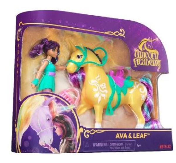 Auf in die Unicorn Academy mit den Spielfiguren von Spin Master! Passend zur Netflix-Serie gibt es auch Figuren-Sets, die jeweils eine Hauptfigur der Serie mit ihrem Einhorn kombinieren. Mit diesen Sets werden die Geschichten und Charaktere im Kinderzimmer lebendig. Die Puppen besitzen jeweils 7 Bewegungspunkte. Sie können damit auf den Einhörnern reiten, die jeweils mit seidigen Mähnen und Schweif ausgestattet sind - perfekt zum Bürsten, Flechten und Verzieren. Sattel und Zaumzeug sind abnehmbar. Dieses Set enthält die stets freundliche Ava als Figur zusammen mit ihrem Einhorn Leaf.